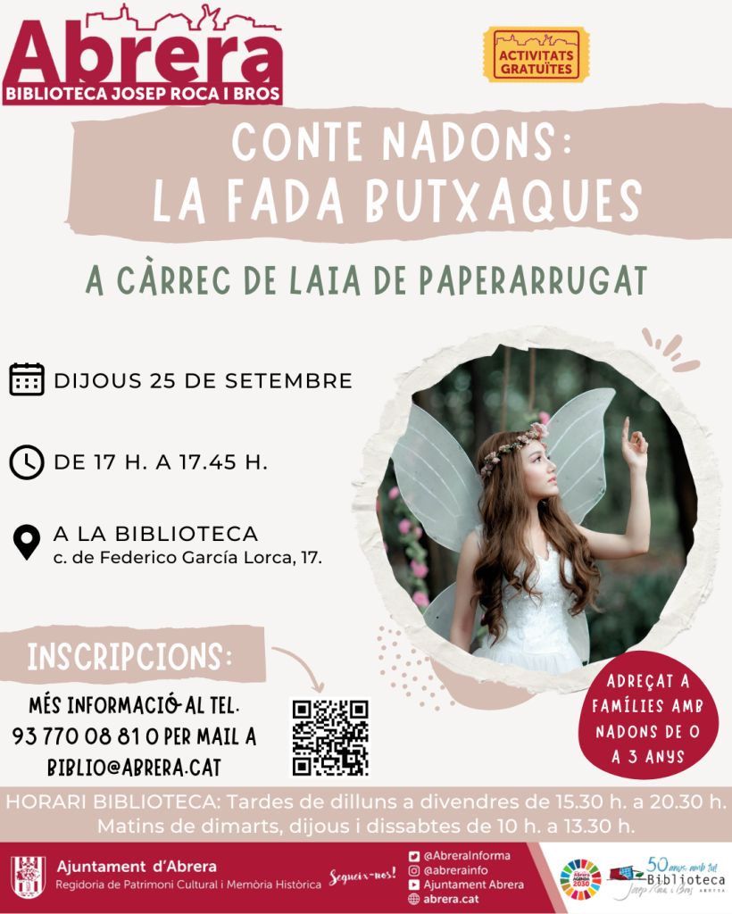 Presencialment, per correu electrònic a biblio@abrera.cat, per telèfon 937700881 i formulari via QR.Organitzador